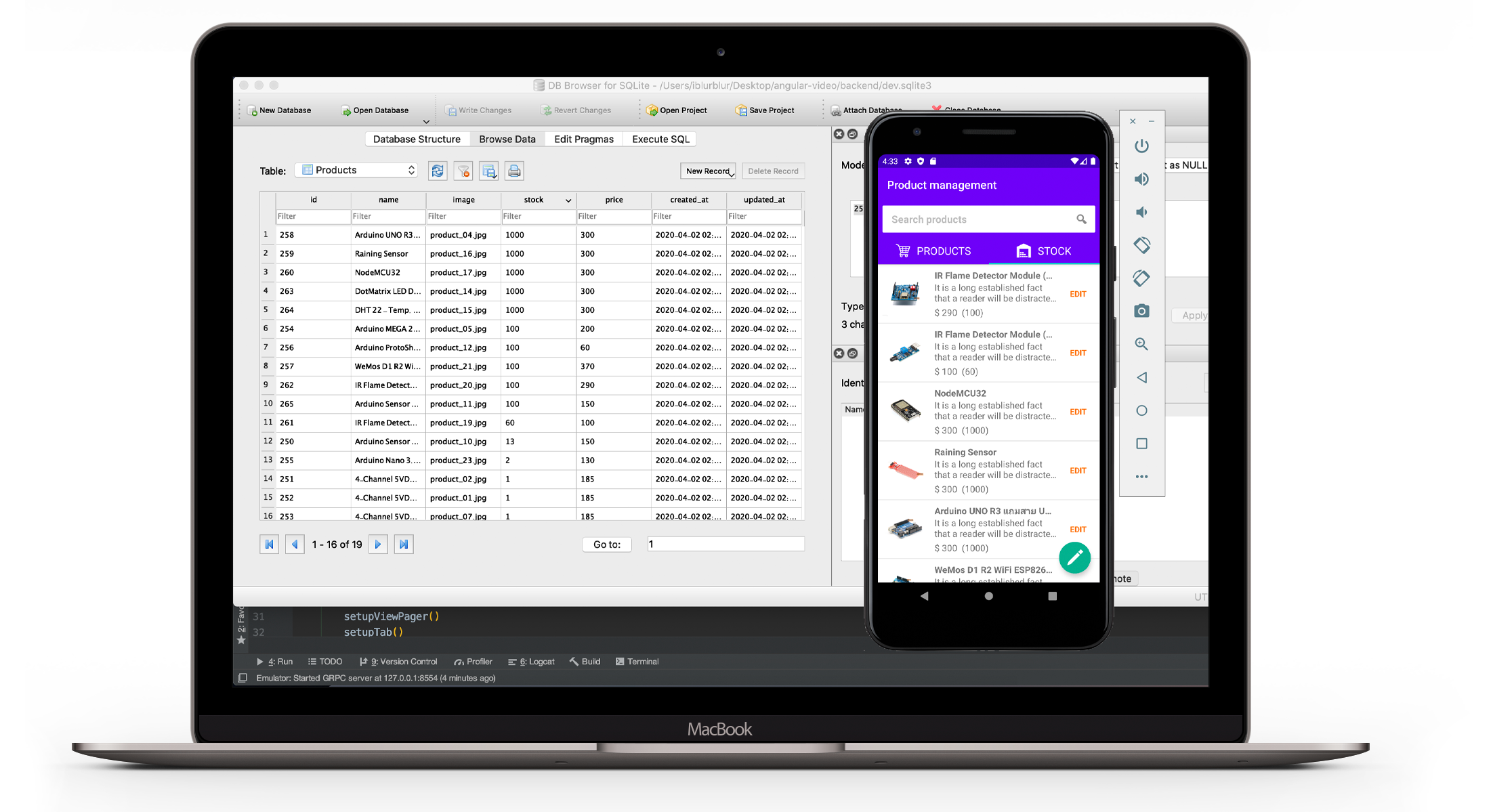 นอกจากนี้ เพื่อให้เห็นภาพการทำงานโดยรวมทั้งหมด Workshop ของหลักสูตรนี้ จะมีการสอนเชื่อมต่อกับ Node.js ในการออกแบบ RESTful API และการเชื่อมต่อ Database โดยใช้ Sequelize ORM (Object Relational Mapping) ที่สามารถเชื่อมต่อกับ SQLite, MySQL, SQL Server ได้โดยที่เราไม่ต้องแก้ไขโค้ดเลย ซึ่งครอบคลุมเนื้อหา Create, Read, Update, Delete (CRUD) รวมถึง สอนการนำ Android Application ขึ้น Google Play พร้อมกับ case study ที่สามารถนำไปต่อยอดได้ในอนาคต